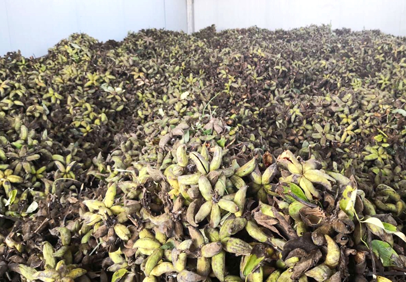 据悉,眼下正是油用牡丹籽成熟的季节,这两个电站上共计近1000亩的光伏油用牡丹郁郁葱葱、长势喜人,饱满的果荚藏在茂密的枝叶间,迎接着采收工人的到来。经现场测产,已收获地块平均亩产鲜果荚达到180公斤,经晾晒脱壳后,预估亩产油牡丹商品种子40公斤,接近同等苗龄常规露地种植的产量水平,尤其在今年4月初遭遇低温冻害后业界普遍减产30%的情况下,更见优势。