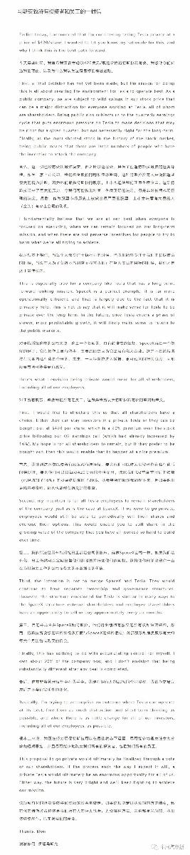 附:特斯拉公司官方发布的《马斯克致所有投资者和员工的一封信》