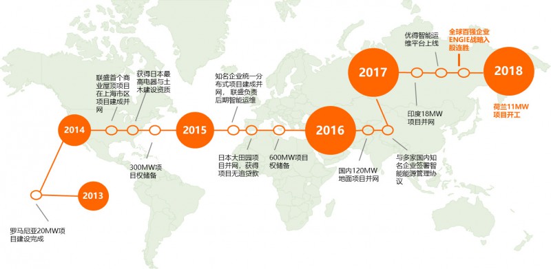 澳洲:澳大利亚是全球光伏产业发展的重要市场之一,年均装机量在GW级以上,根据澳大利亚的可再生能源目标(RET),2020年前澳大利亚将有至少20%的电力来自可再生能源。联盛新能源在澳大利亚拥有多个项目处于开发项目,预计2018年规划项目开工。