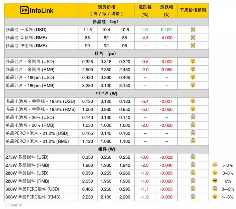 PV Infolink现货价格信息中,人民币价格皆为中国内需报价,而美金显示之价格则为非中国地区的海外价格,并非人民币直接换算美金。