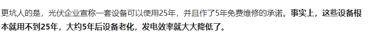 几天前,一个光伏盒子的热心粉丝给笔者留言。他发来了一个文章链接《揭秘农村光伏太阳能骗局!看完本文你就清楚知道真假了!》。他说:本来客户有一个工厂准备安装光伏,但是看到这篇文章就反悔了。到了最后,连他自己都感到很迷惑,到底光伏寿命真的能有25年么?