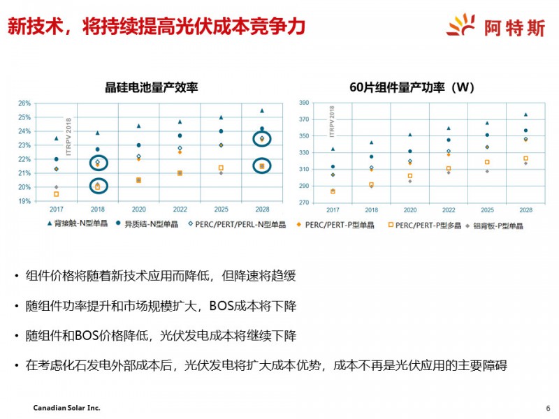 光伏怎么做到这一点的?说到底还是技术,说到底还是成本跟竞争力。因为技术的发展,因为规模的发展,使得晶硅电池量产的发电效率不断提高,而且这个步伐看起来还停不住。