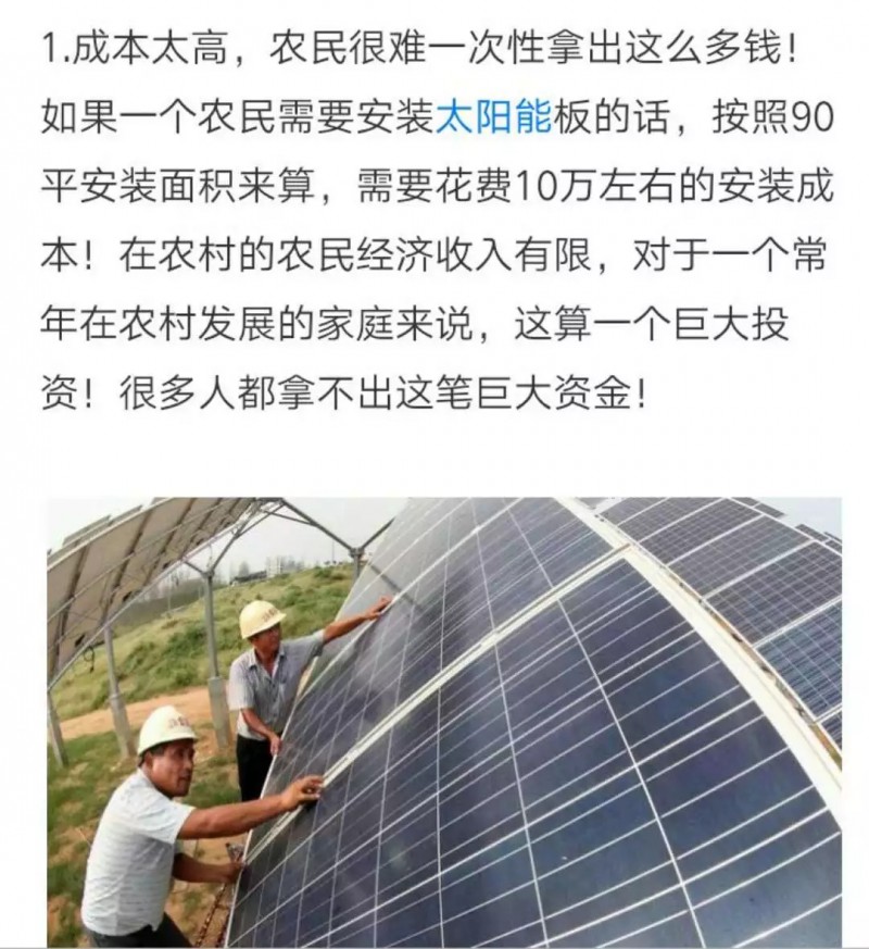近期小盒子看到一篇文章《光伏发电扶贫下乡“遇冷”,农民纷纷吐槽表示用不起!》吐槽光伏扶贫项目,小盒子有些懵逼,国家政策积极扶持,所有补贴都优先,不需农民付钱的扶贫项目农民为什么会用不起?小盒子没忍住点进了这篇文章,看完之后内心久久不能平静……下面我就来解说一下这篇骇人听闻的文章……