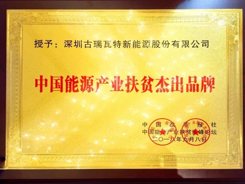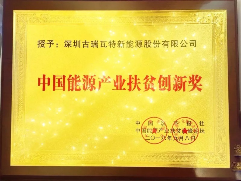 2018年9月8日,由中国改革报社《能源发展》周刊、北京国发智慧能源技术研究院主办,绿能帮文化传媒(北京)有限公司承办的“2018中国能源产业扶贫高峰论坛”在北京举办。国家发改委、多地扶贫办与优秀企业一起共同探讨中国式能源扶贫新方案、新模式,翻开了能源扶贫事业的新篇章。作为分布式光伏逆变器的领军企业,古瑞瓦特在扶贫领域做出了积极努力,不断探索精准扶贫机制,荣膺“中国能源产业扶贫杰出品牌”、“中国能源产业扶贫创新奖”两项大奖。