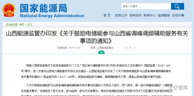 山西省是最早开启的储能战场。2017年11月7日,山西省能监办发布《关于鼓励电储能参与山西省调峰调频辅助服务有关事项的通知》,旨在提高山西电力系统调节性能,更好消纳风电光伏等清洁能源。
