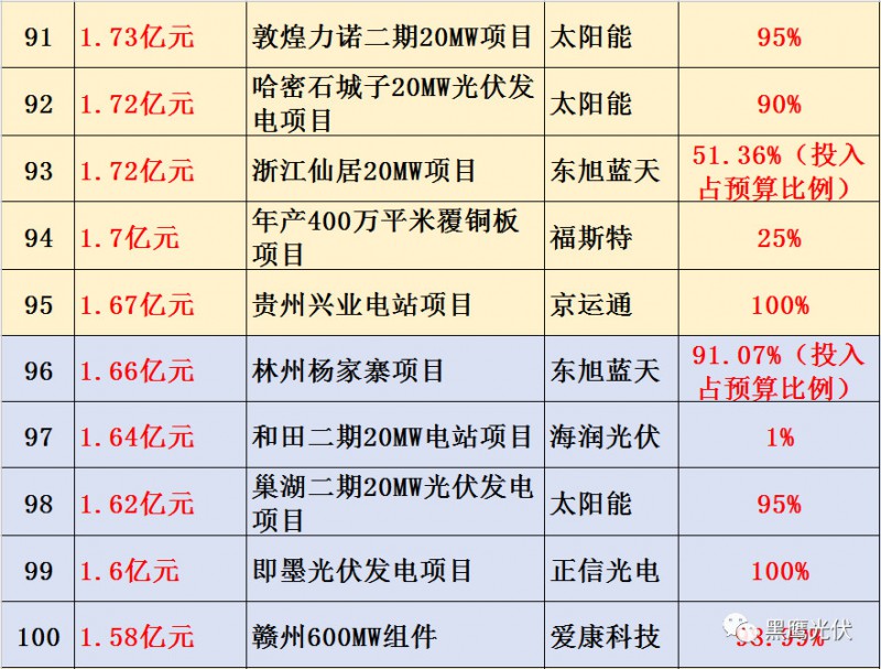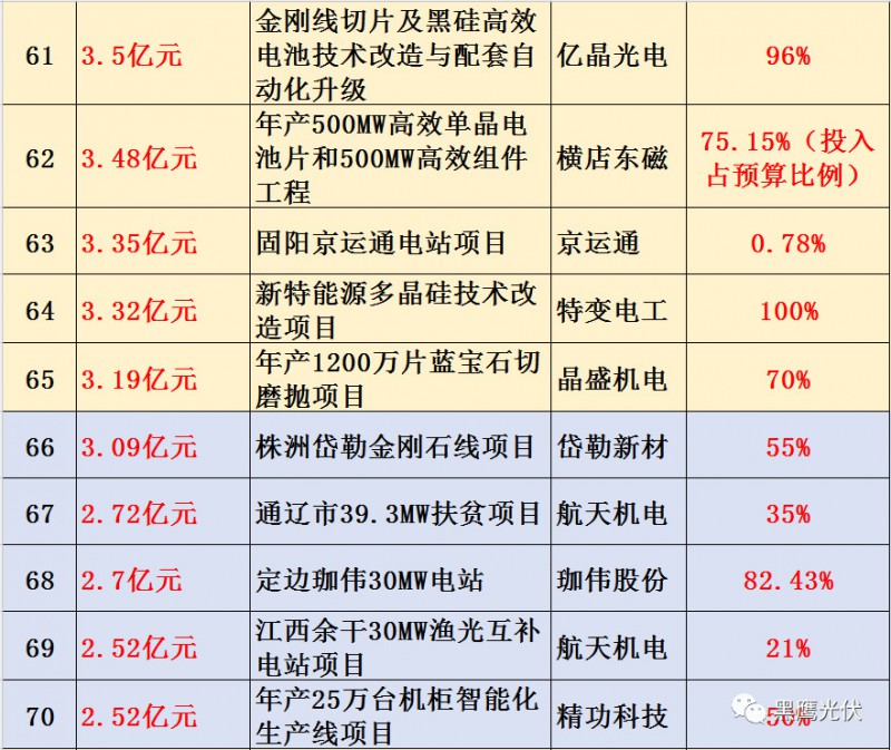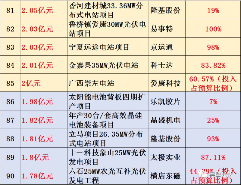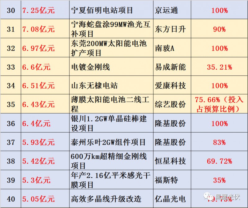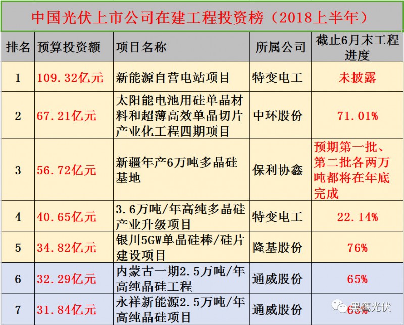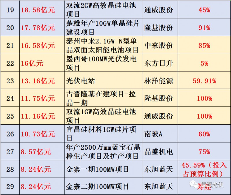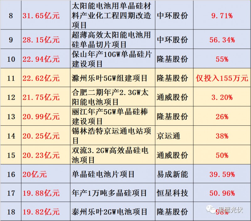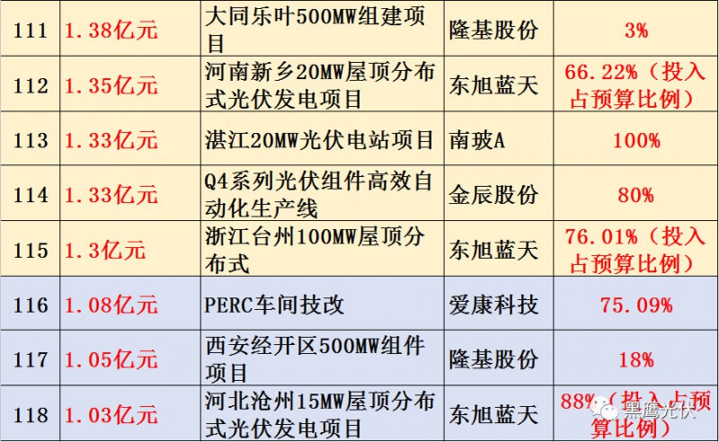 这118个亿级“在建工程”中既有高效产能扩张、新技术改造升级,又有耗资数十亿的产业链纵向扩张,还有重大光伏电站工程等重大项目。这里面展现了各企业未来战略侧重点,产业野心以及未来想象空间。