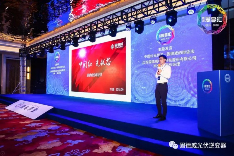 固德威作为主要战略支持单位,总经理黄敏先生,副总经理方刚先生,副总经理侯祥勇先生等悉数到场助阵。方总以“中国红,光伏芯”做主题发言,讲述固德威的企业成长辩证法,获得阵阵掌声。固德威也以“中国红,光伏芯”品牌形象成为论坛焦点,备受瞩目。