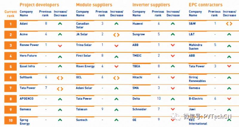 或许最显著的变化之一出现在逆变器市场, 随着华为(市场份额16.3%)和阳光电源(14.9%)取代ABB和日本TMEIC顶尖供应商的位置,中国首次开始主导市场。