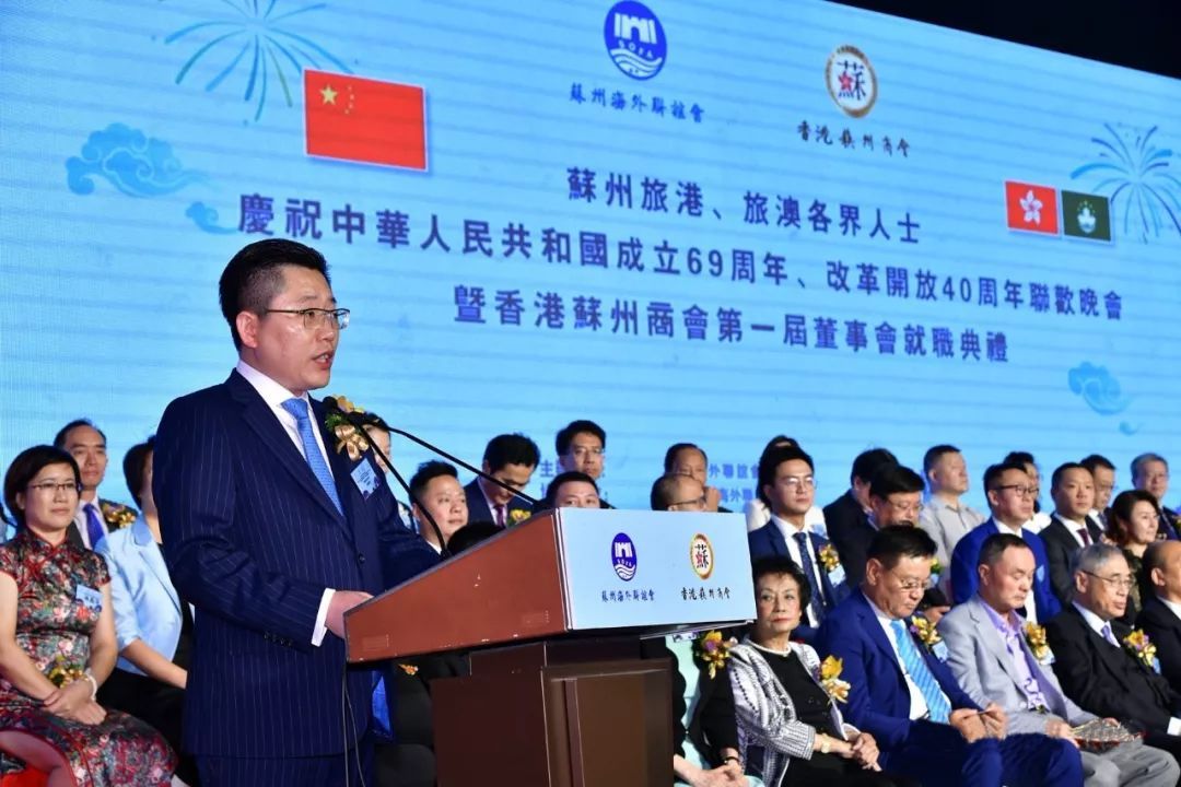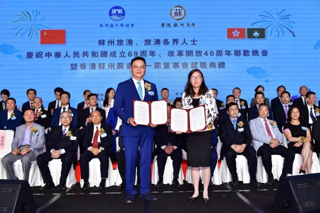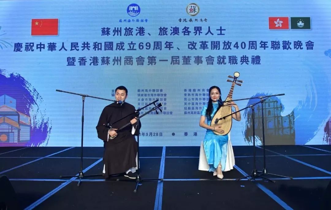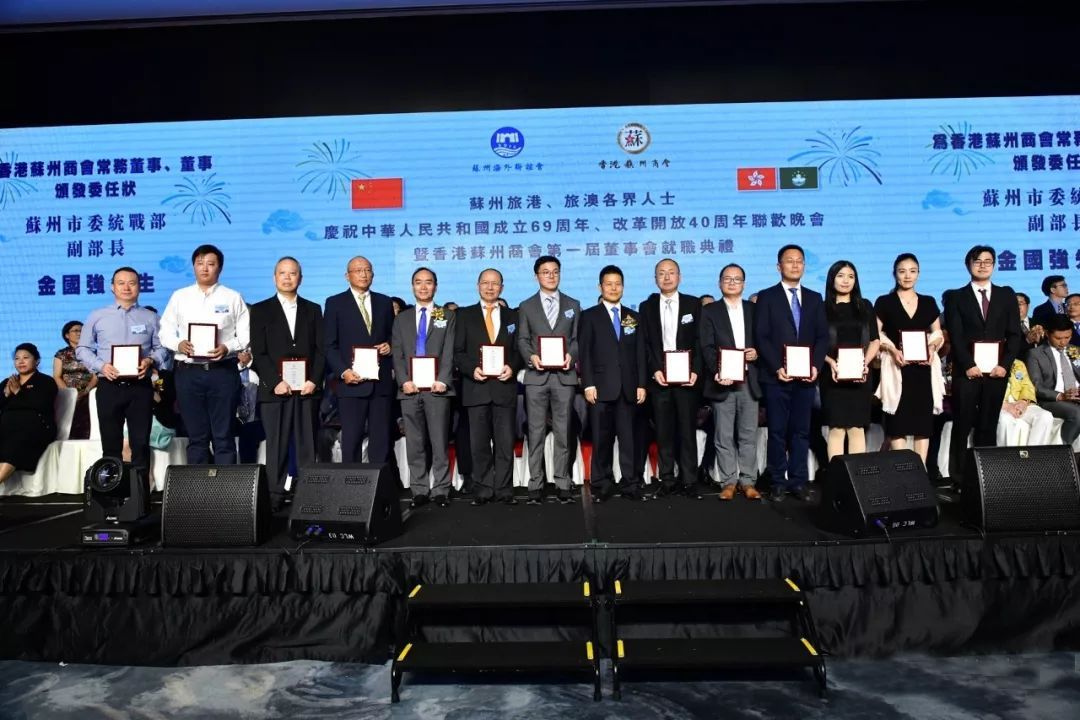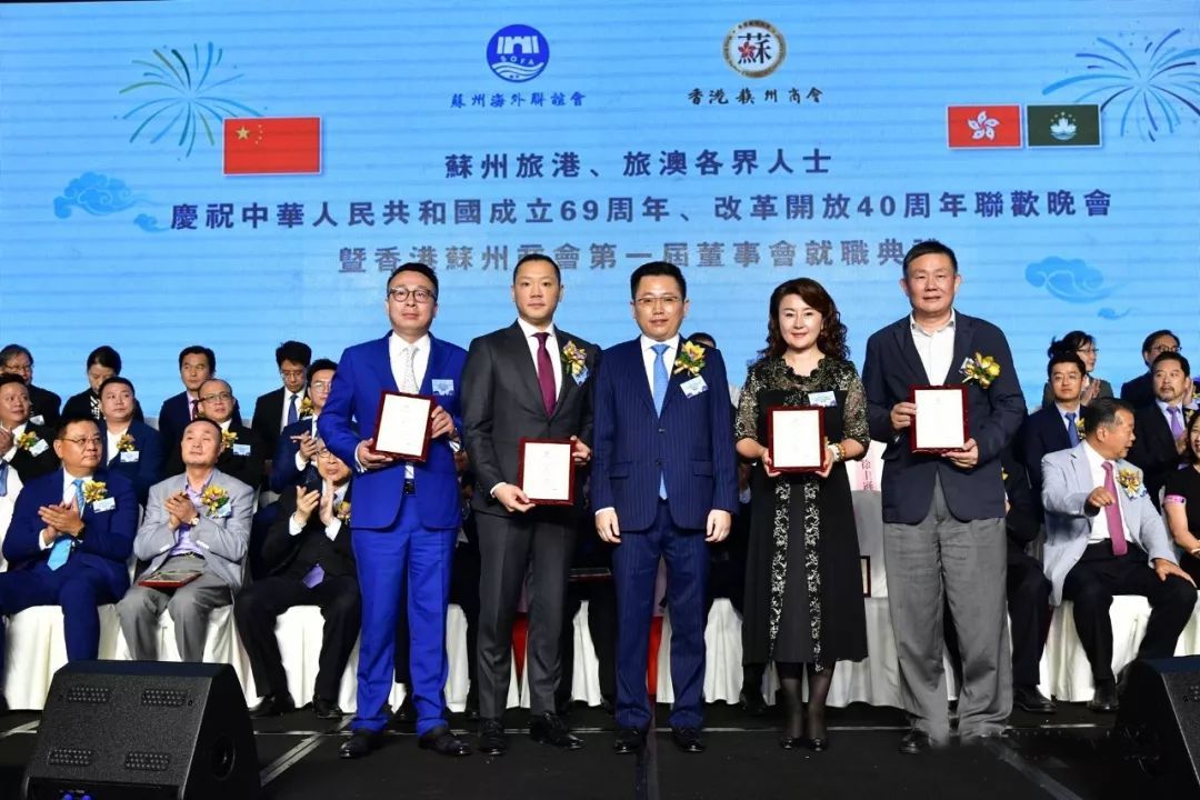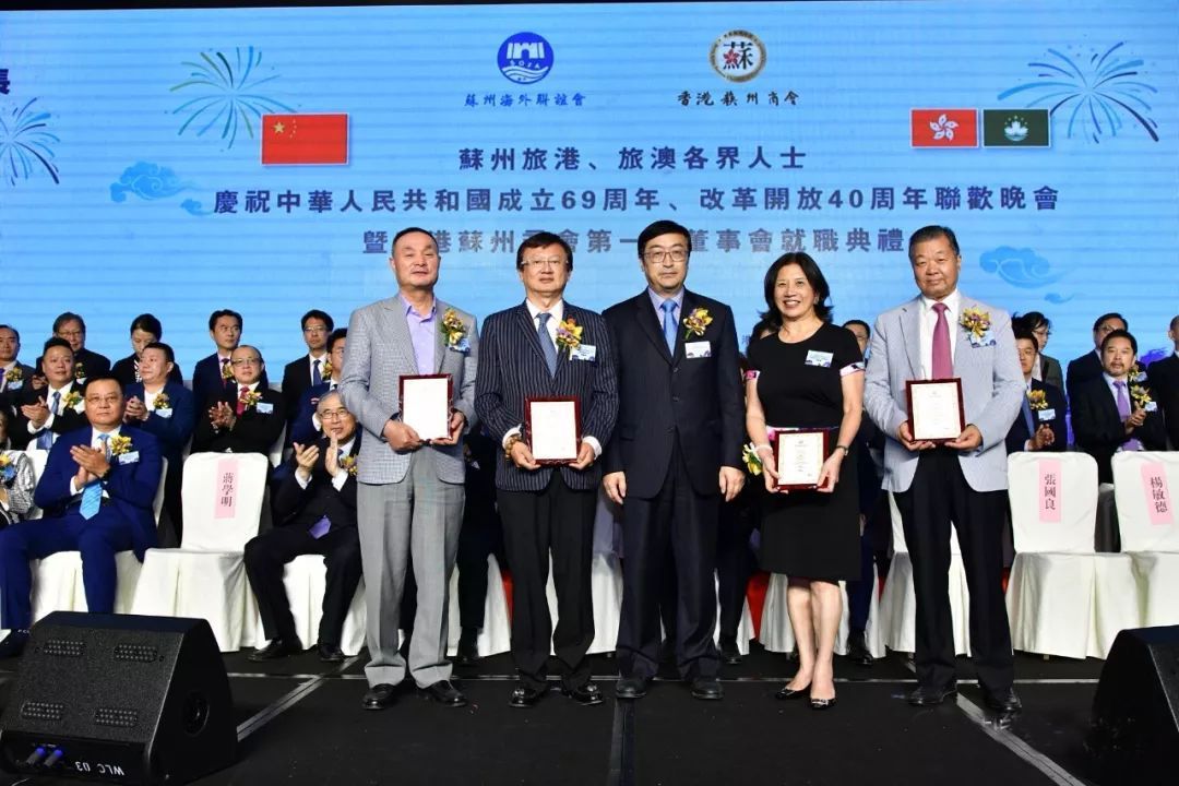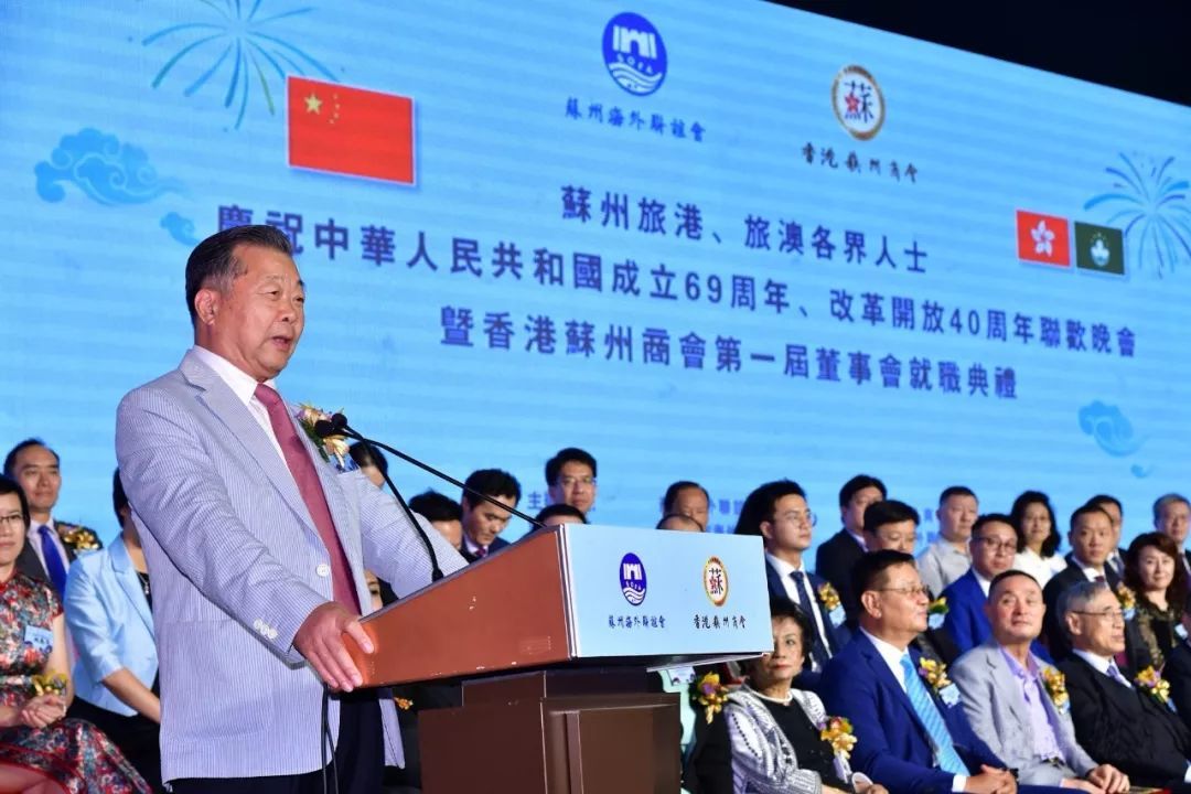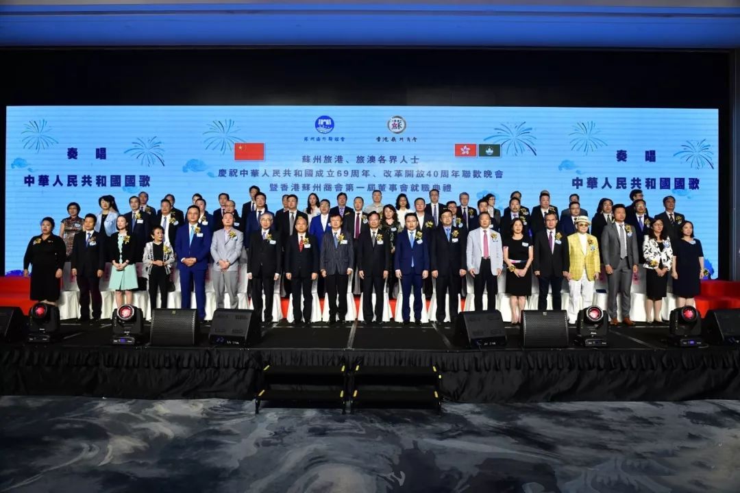 9月28日晚上,苏州旅港、旅澳各界人士庆祝中华人民共和国成立69周年、改革开放40周年联欢晚会暨香港苏州商会第一届董事会就职典礼在香港举行,苏州旅港、旅澳各界人士齐聚香江之畔,共话桑梓、祝福祖国。