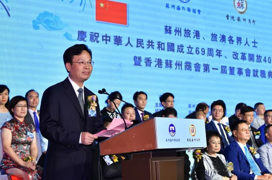 在致辞中,姚林荣代表中共苏州市委,向长期以来关心支持苏州发展的香港、澳门各界人士表示衷心的感谢。他说,当前,苏州正以习近平新时代中国特色社会主义思想为指导,为推动高质量发展,勇当“两个标杆”、建设“四个名城”,争做“强富美高”新江苏建设先行军排头兵而不懈奋斗。他希望广大旅港、旅澳乡亲继续坚定不移地拥护“一国两制”方针,支持香港特区政府、澳门特区政府依法施政,积极参与社会事务,继往开来、再创辉煌,为祖国、为家乡再添荣光;一如既往地关心支持家乡发展,积极促进苏港、苏澳合作,当好苏港、苏澳交流的使者,共享苏州发展的新机遇新红利;同时,欢迎在港澳的年轻人回家乡创新创业,共同把家乡建设得更美好。