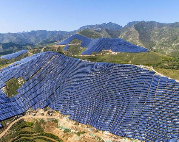 山西芮城电站是全国最大的集中式光伏电站,投资达88亿人民币,放眼望去,绵延40公里全是光伏板,满山蓝色的“灰甲”,源源不断地收集着阳光,将太阳能转化为电能,然后再通过电网输送到有需要的地方。
