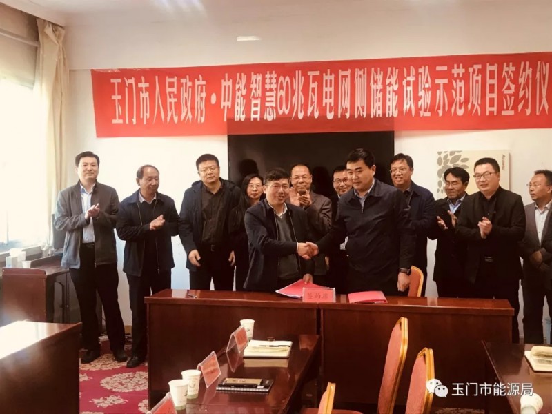 为加快玉门市新能源产业发展,推动储能项目开发建设,探索解决新能源弃风弃光限电发展瓶颈,玉门市人民政府与中能智慧签订了60兆瓦电网侧储能试验示范项目合作协议。项目总装机60兆瓦,投资4亿元,在玉门东镇建设安装储能电池60兆瓦,配套建设附属电力设备,接入玉门东镇330千伏变电站并网运行。该项目的建设将储能发电系统引入电网,通过秒级调控有效平抑新能源电力波动、稳定并网,对解决弃风弃光限电难题进行技术和经济上的验证,为玉门、酒泉乃至全省后续多能互补应用推广提供宝贵的实践经验、技术参考、数据积累和科学依据。