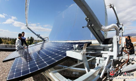 近日,张家口经开区“太阳贝”光伏发电示范点项目在该区东辛庄中学投用,为该校师生提供免费用电及饮用热水。该设备目前可供应学校每天所需饮用水1500升。下一步辅助系统完成后,可实现“太阳能+辅助供暖”系统,供应学校主楼3层的大部分用电和冬季供暖。记者刘雅静 通讯员马佳琦摄影报道