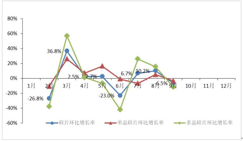 图 6 2018年1-9月硅片产量环比增长率