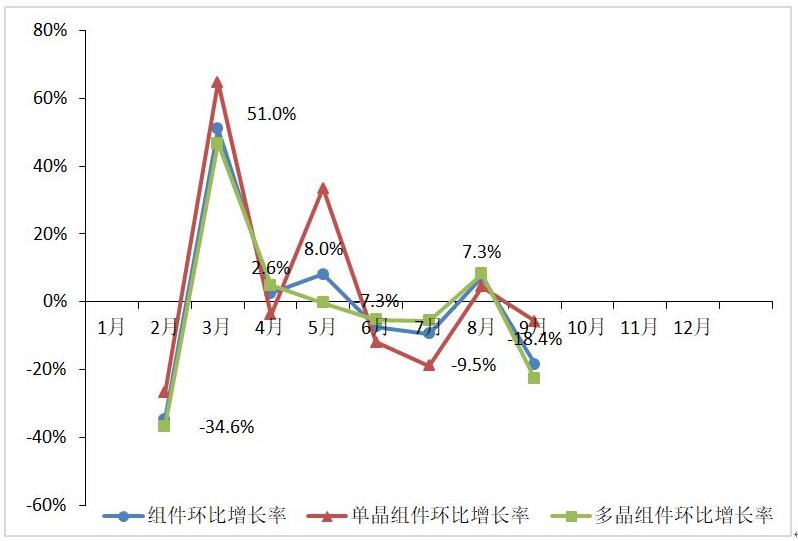 图 12 2018年1-9月组件产量环比增长率