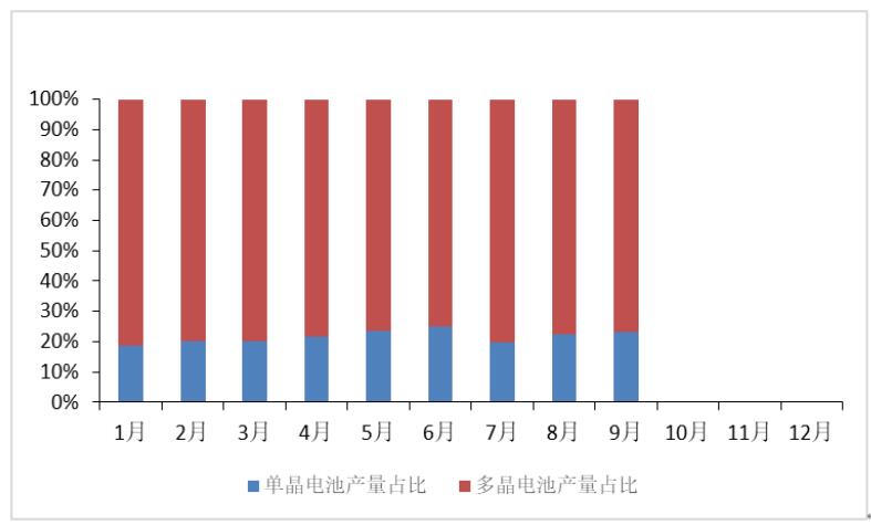 图 11 2018年1-9月单晶、多晶电池片产量占比
