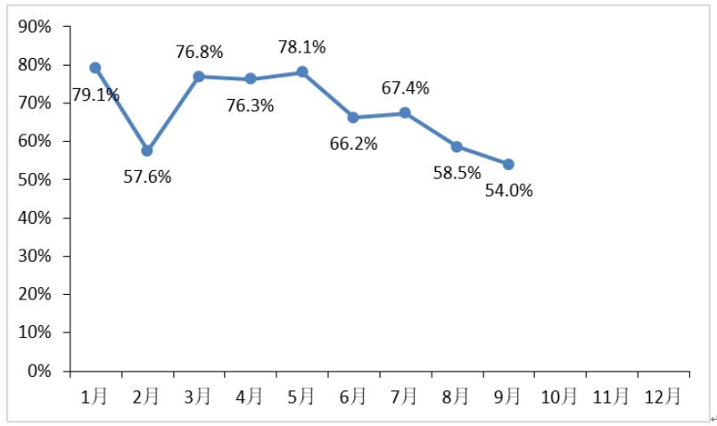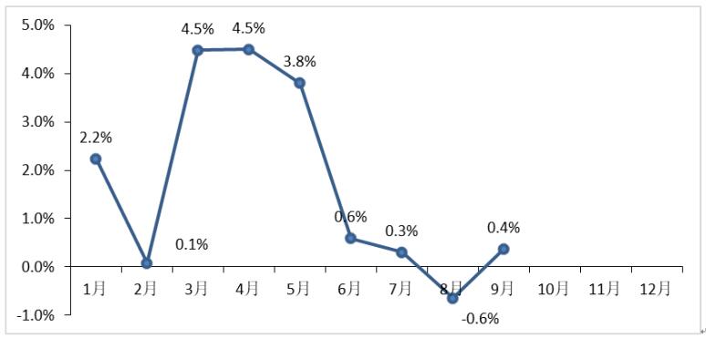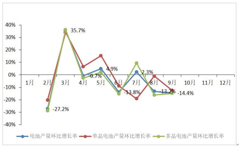 图 9 2018年1-9月电池片产量环比增长率