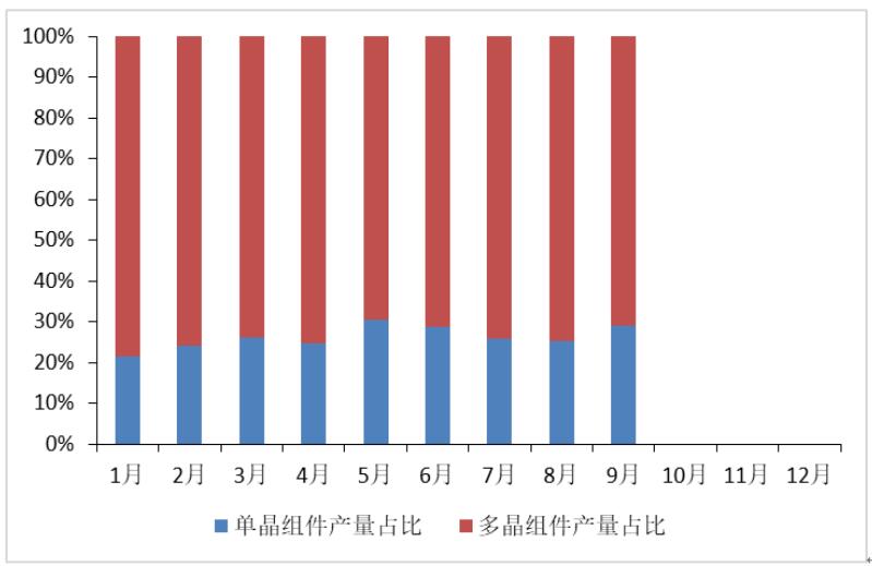 图 14 2018年1-9月单晶、多晶组件产量占比