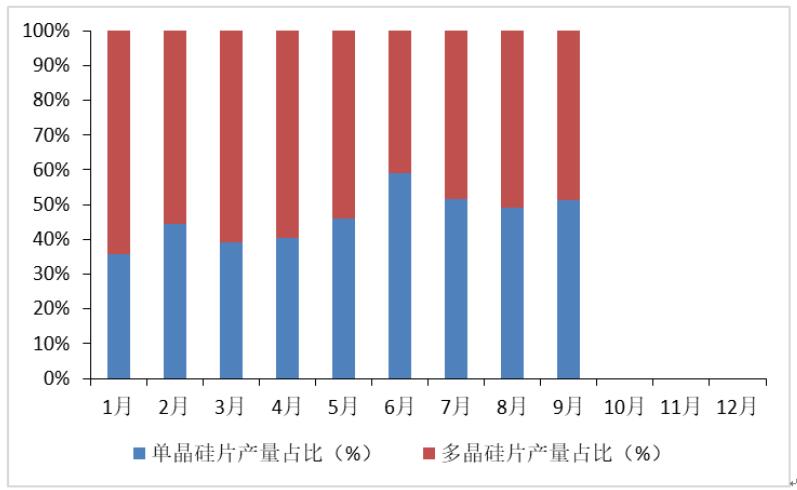 图 8 2018年1-9月单晶、多晶硅片产量占比