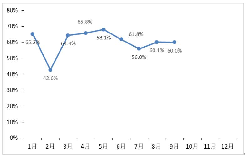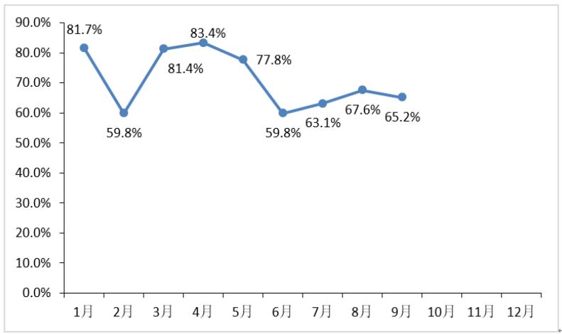 图 10 2018年1-9月电池片企业平均产能利用率