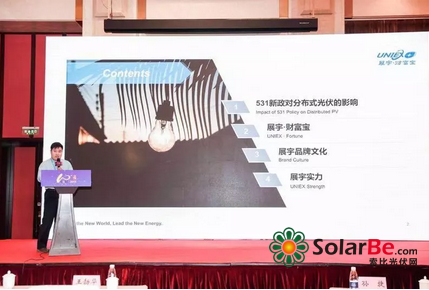 在当日下午的巅峰对话中,展宇光伏总经理宋钰聚焦地面光伏与分布式光伏之间的特点与差异,从展宇自身经验角度出发,构建平价上网路线图。同时,他认为作为民营企业仍需把握当下机会,从绿色金融角度进行创新,不断突破,发展自身,展宇也将继续坚持锐意进取,不断改造和升级传统发电的供应方式,实现更加环保、低碳、高效的能源生产。