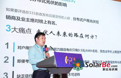 在11月2日的大会主题演讲环节,展宇光伏渠道事业部总监张平伍发表了以“光伏合伙人,平价上网路”为主题的演讲内容。