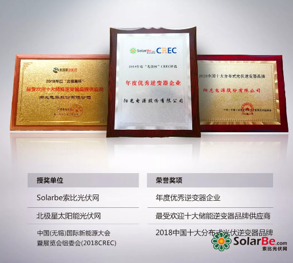 近日,2018CREC、索比光伏网、北极星太阳能光伏网等知名光伏行业机构、论坛等发起年度盘点、评选,综合业内专家权威评定及网友票选,陆续出炉一系列年度最佳评选结果。基于广大光伏人的厚爱,阳光电源在逆变器、运维及品牌等多方面大获赞誉。