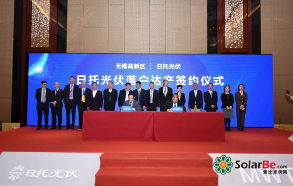 活动期间,无锡市、新吴区政府领导一行及行业诸多专家一起参观了日托光伏品牌展厅及600MW高效MWT背接触组件电池线,并给予了高度评价。随后,在无锡市、新吴区政府,无锡产业集团,业内外专家学者,诸多媒体与第三方机构,以及到场的日托光伏嘉宾的共同见证下,无锡新吴区与日托光伏签署了落户达产协议。这标志着日托光伏无锡基地现有生产项目已达产运行。