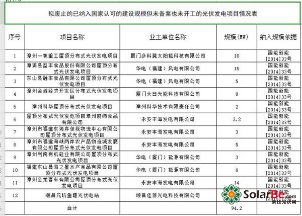 1.拟废止的已备案且已纳入国家认可的建设规模的未开工光伏发电项目情况表