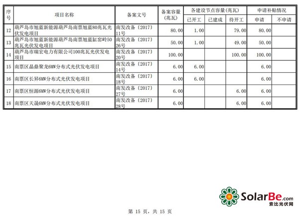 4. 已备案但未纳入规模,已开工项目(包括2017年投产且无规模指标项目):共51个项目、规模1333兆瓦。