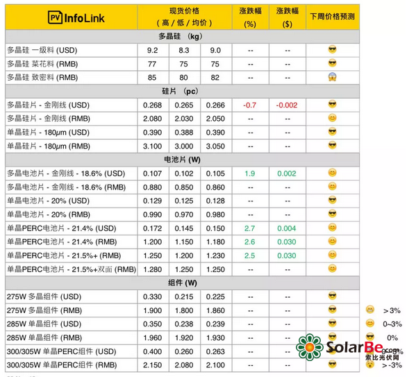 PV Infolink现货价格信息中,人民币价格皆为中国内需报价,而美金显示之价格则为非中国地区的海外价格,并非人民币直接换算美金。