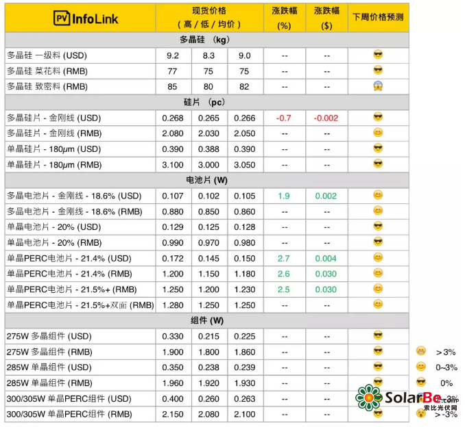 PV Infolink的现货价格主参考超过100家厂商之资讯。主要取市场上最常成交的“众数”资料作为均价(并非加权平均值)、但每周根据市场氛围略有微调。