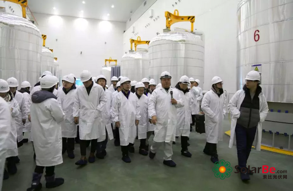 (投资人参观投产中的新疆协鑫6万吨多晶硅还原车间)