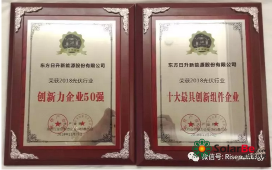 「PV TOP 50」旨在表彰受光伏市场认可,具有突出创新力的行业产品和技术,表彰年度为中国光伏行业发展做出贡献的企业,引领中国光伏产业创新与健康可持续发展。在经过申报-初审及公示-网上投票等环节的激烈角逐之后,近百家企业荣获各项奖项,载誉而归。东方日升则将四项大奖收入囊中。