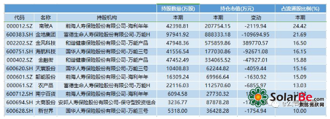 今年三季度末险资持股比例较高的公司(剔除金融类企业)