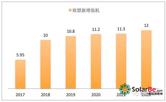 2017-2020年欧盟新增装机(GW),数据来源:PV Infolink