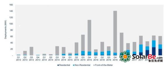 WoodMackenziePower&Renewables和能源存储协会(ESA)上周四发布了美国储能监测报告,显示美国第三季度储能部署同比增长44%。具体而言,美国第三季度总共部署了61.3兆瓦(MW),同比增长198%。