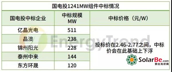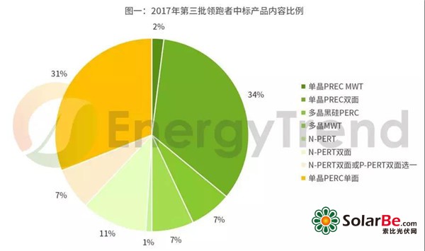 根据5GW应用领跑者中标情况,约有1810MW项目是组件企业单独中标或者作为联合体的一方中标。在此情况下,默认为该项目的组件选用该品牌的产品。因此,仅剩下3190MW的项目,是所有组价企业在同一平台下竞标。