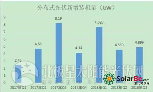 然而,事实上,给2018年光伏市场烙下重要一印的两项政策却并未带来下半年分布式光伏市场的“休止符”。国家能源局的统计数据显示,第三季度分布式光伏新增装机达4.899GW。而6月分布式光伏新增装机约2.24GW,其中户用6~8万户,按每户8Kw,总量不超1GW。这意味着,6~9月未纳入国家认可规模管理范围的分布式光伏装机已超6GW。