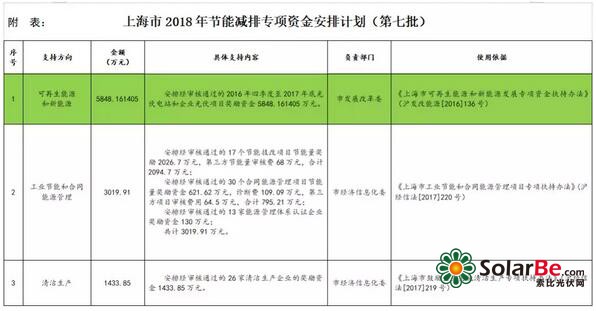 1、按照《上海市可再生能源和新能源发展专项资金扶持办法》(沪发改能源[2016]136号)等规定,安排经审核通过的2016年四季度至2017年底光伏电站和企业光伏项目奖励资金5848.161405万元。
