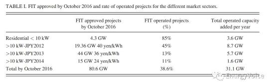 下图显示了截止2016年10月,获批FIT的项目规模,投入运营的比例以及每年实际新增装机量: