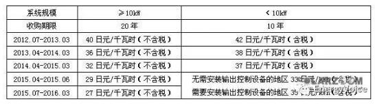 日本于2012年7月1日启动固定上网电价政策,大于10kW光伏系统上网电价为40日元/度,补贴20年;不足10kW的光伏系统上网电价为42日元/度,补贴10年,此后的上网电价每年调整。由于其高额的补贴,促进了其国内的光伏装机市场的迅猛发展。