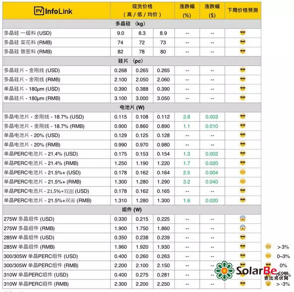 *因应市场效率提升,下月起PV Infolink将取消转换效率21.4%之单晶PERC电池片报价。