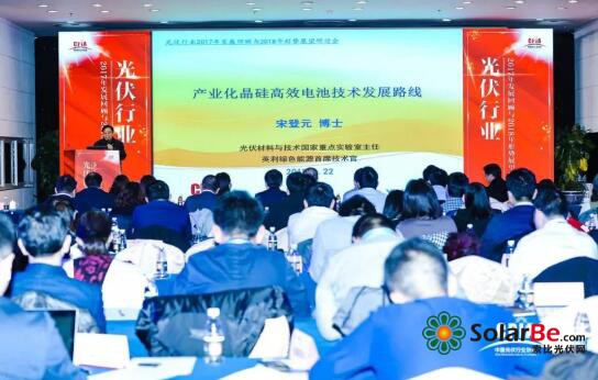 1月24日,由中国光伏行业协会主办的“光伏行业2017年发展回顾与2018年形势展望研讨会”在北京召开。英利应邀做“产业化晶硅电池技术发展路线”主题报告,全面介绍英利高效“熊猫”电池的发展历程。