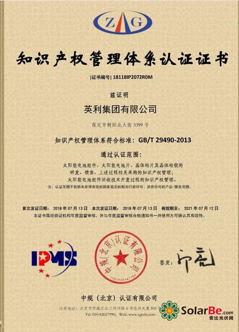 7月,经过为期三天的严格审核,英利顺利通过“知识产权管理体系认证”。据介绍,这是英利在知识产权方面取得又一重大成绩,标志着英利在知识产权管理领域迈上新的台阶。