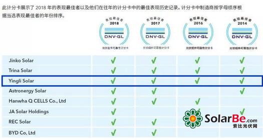 6月,国际权威认证机构DNV GL发布了其第四份年度光伏组件可靠性记分卡报告。其中显示,英利组件连续四年通过可靠性测试并成为“最佳表现者”。