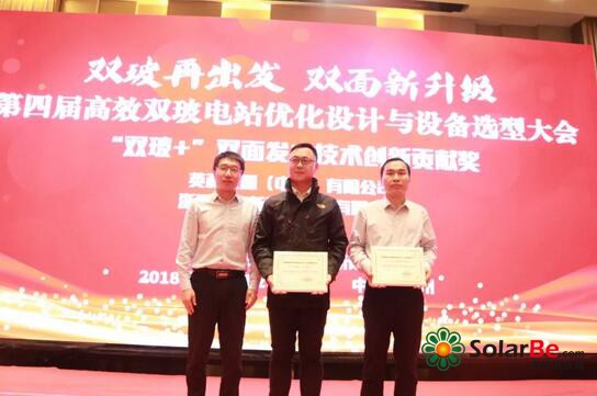 10月29日,第四届高效双玻电站优化设计与设备选型大会在江苏常州召开。英利就“熊猫”双面发电技术作主题报告,“熊猫”双面发电产品荣获“双玻+”双面发电技术创新贡献奖。