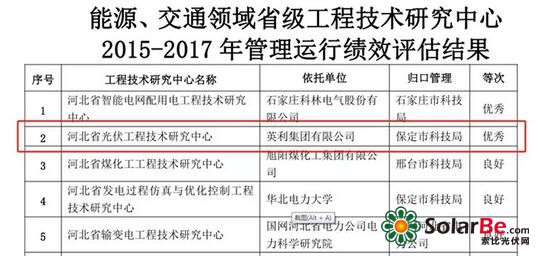 10月,河北省科技厅发布“关于公布2018年省级工程技术研究中心评估结果的通知”,英利承担的“河北省光伏工程技术研究中心”以“优秀”的成绩顺利通过评估。