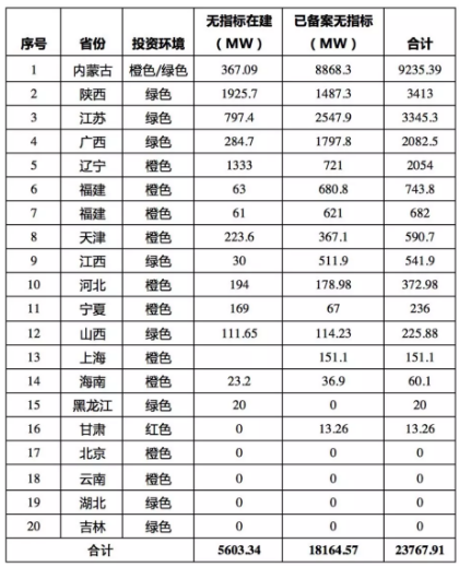 对于第一个问题:已经有20个省能源局早前就已经法开始了各省的无指标项目(在建、已备案)排查工作,涉及项目容量高达23.77GW。