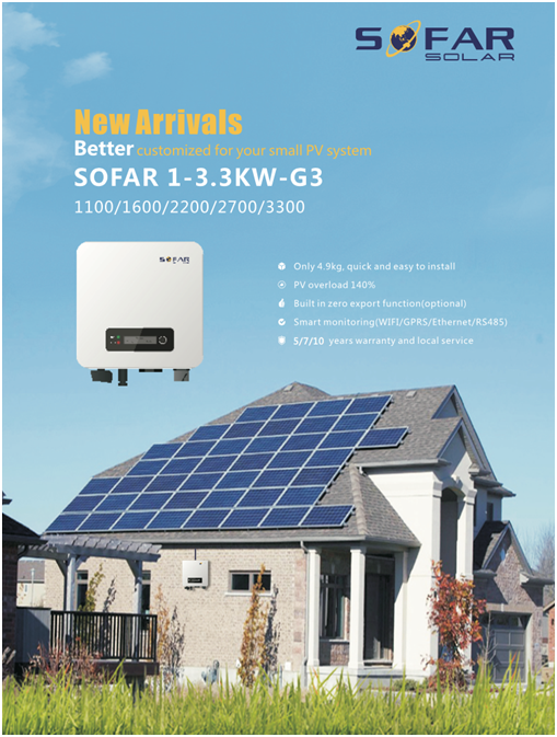 Sofar solar is currently one of the top 5 string inverter companies through China, it earned an important position in the field of energy storage inverter. Now Sofar solar released a statement explaining just that will take this opportunity of the Solar Solution exhibition to launchthe latest generation inverter model, named Sofar 1-3.3kW-G3,the new model includeSOFAR1100TL-G3,SOFAR1600TL-G3,SOFAR2200TL-G3,SOFAR2700TL-G3,SOFAR3300TL-G3.